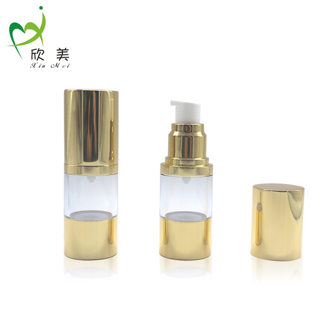 15 мл Роскошная золотая пластиковая Вакуумная бутылка для лосьона BB крем насос бутылка